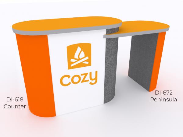 Folding Fabric Counters and Pedestals are the ultimate "Be there, Go anywhere" accessory for trade shows and events. There's no need for tools. They simply unfold with a convenient accordion hinge. These durable accessories feature two-sided Velcro-compatible fabric, making changing graphics a breeze. And there are over 20 fabric color options. All include adjustable feet. Many can double as a table top display when not being used as a counter or pedestal. Don't see exactly what you want? No problem. We specialize in designing and building counters and pedestals that meet any need.