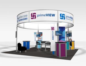 RE-9071 / Prime Care - Image 1The Rental Island Exhibits go way beyond a pretty picture. We've incorporated key features such as large graphics, private and semi-private conference rooms, towers with locking storage access, and workstations and reception counters with secure storage. Not enough? Then add product shelves, large and small monitors for presentations, a variety of light fixtures, and hanging signs for high visibility from anywhere on the show floor. We also offer three contemporary double-deck configurations.